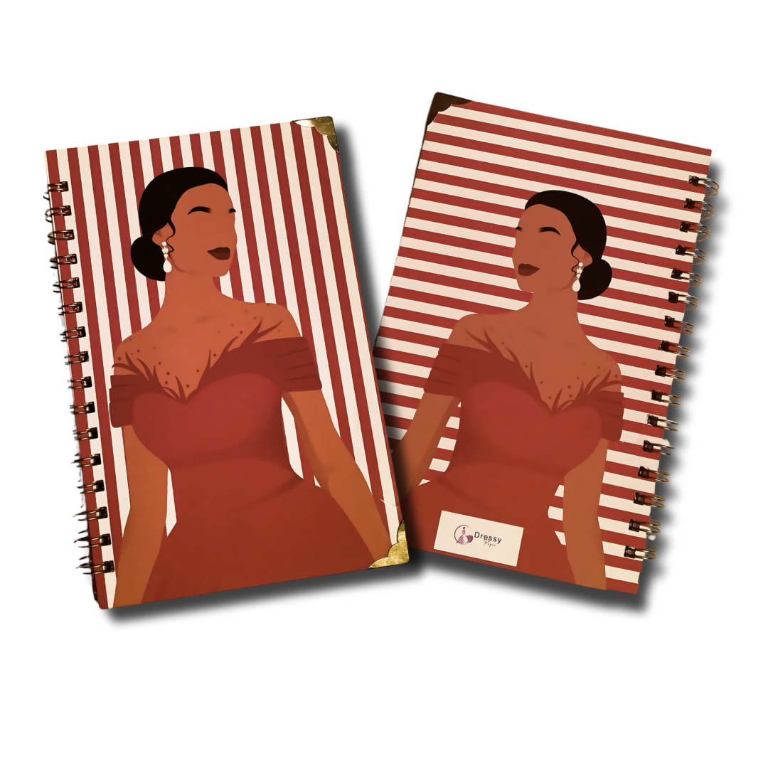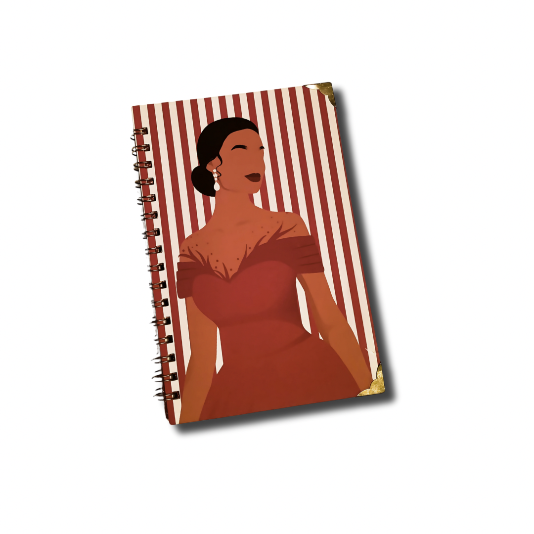 Wrapped in radiant red with elegant stripes and pearl drop earrings, this waterproof hardcover notebook is a whole moment. With luxury gold end pages in the front and back, 100 lined sheets, gold coil binding, and gold corner protectors — every detail was made to match her energy.